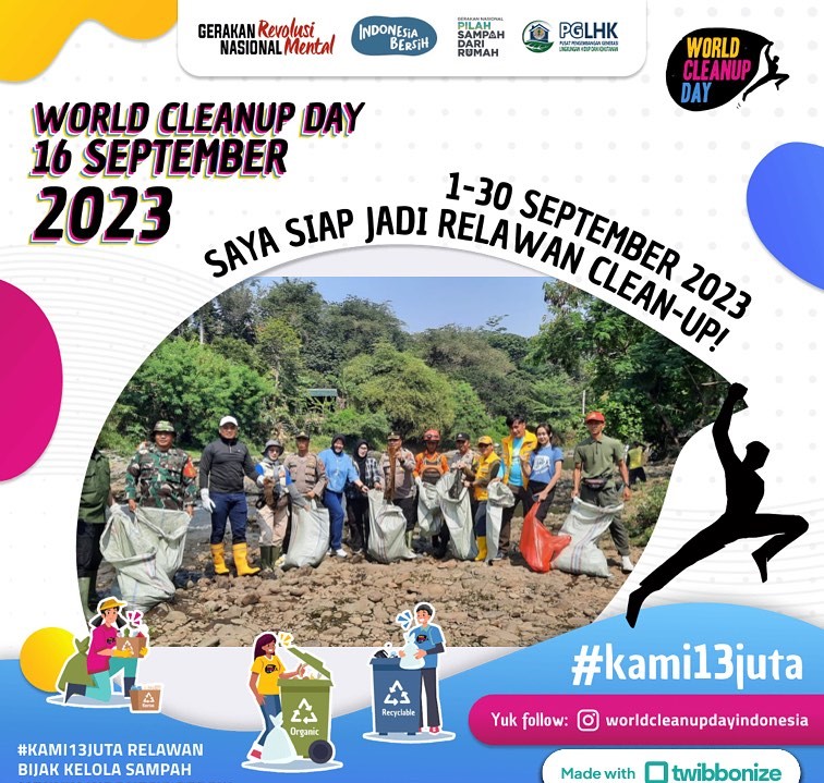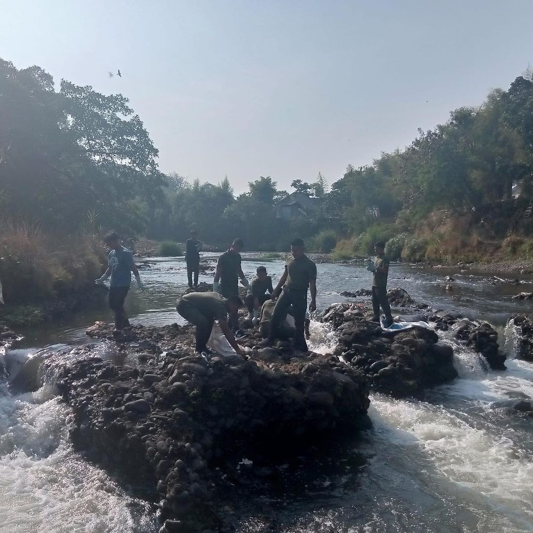 Personel Pusdikzi mengikuti kegiatan World Cleanup Day 2023 di 3 titik Sungai Ciliwung, Kedunghalang, Bogor pada hari Minggu, 24 September 2023