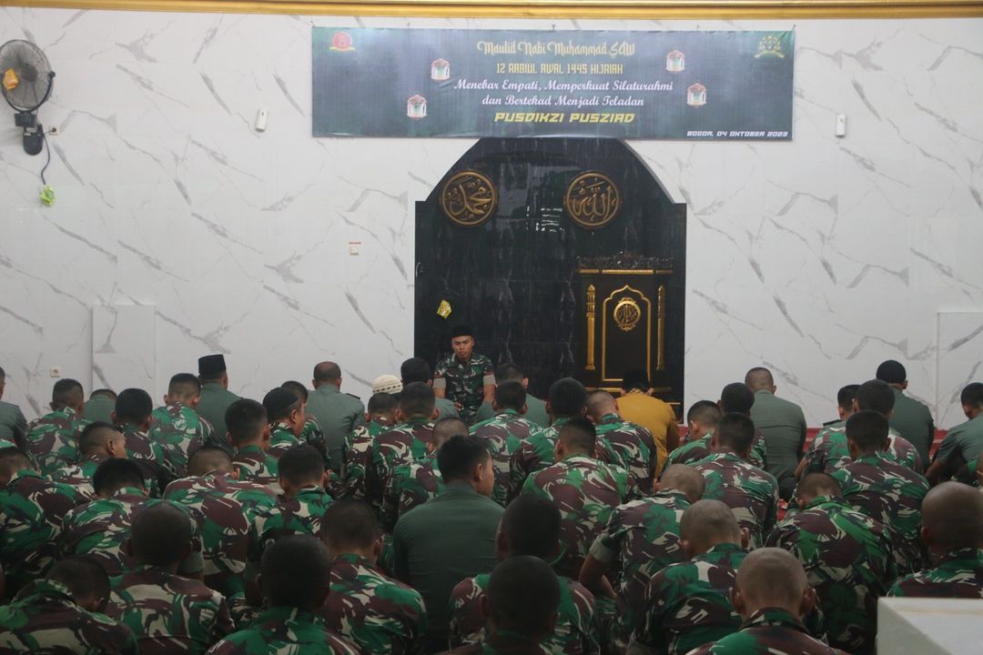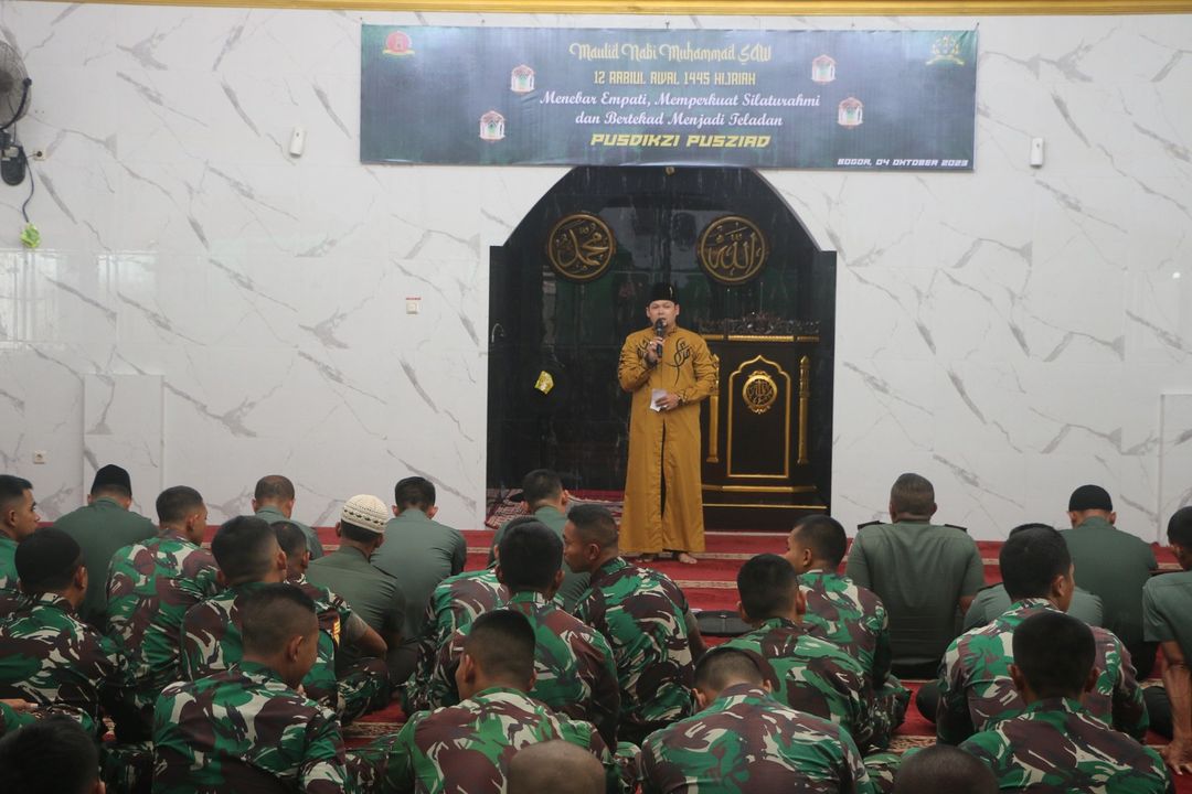Pusat Pendidikan Zeni menggelar acara peringatan Maulid Nabi Muhammad SAW Tahun 1445 H/2023 M yang diikuti oleh seluruh keluarga besar Pusdikzi beserta siswa yang sedang melaksankan pendidikan di Pusdikzi, bertempat di Masjid Anizarul Mu’min. Rabu, (4/10/2023).